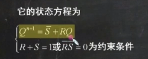 这时候我们就可以很容易的得出RS触发器的状态方程了;一定要牢记RS触发器的约束条件:R+S=1