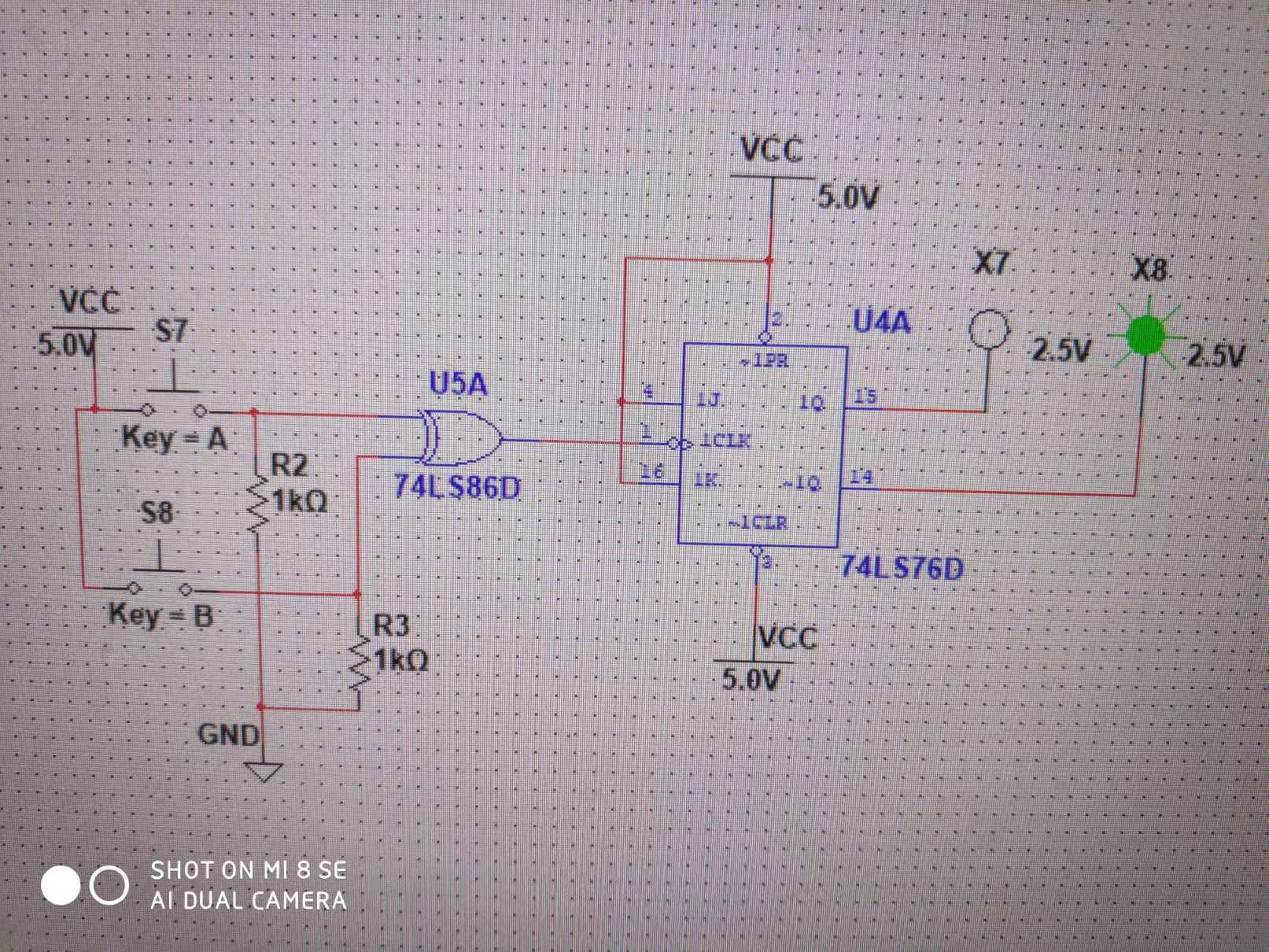 首先这两个开关异或是的当两个开关都闭合或者都未闭合是为0只有一个闭合是为1之后控制这个jclk的0和1变换,控制输出的转换