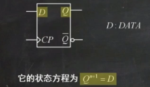 D触发器的状态方程是所有触发器里最简单的,当CLK(CP)时钟信号端获得符合要求的边沿信号时,此时数据段Q'=D
