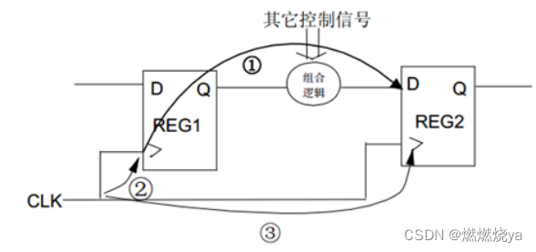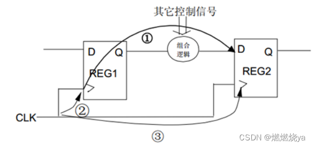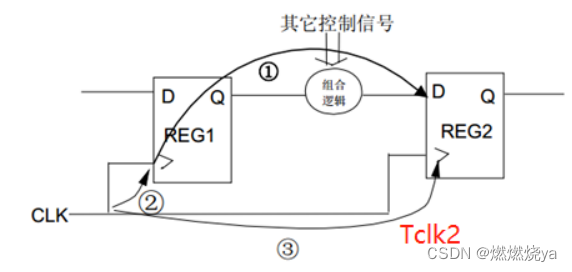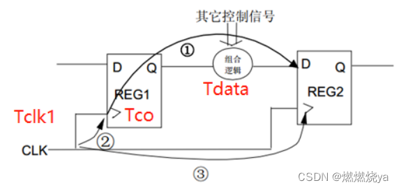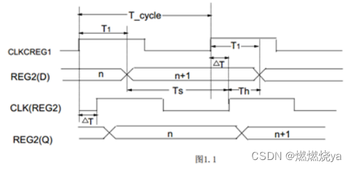 T1=REG1检测到时钟后内部延时+组合逻辑延时最后到达REG2的时间