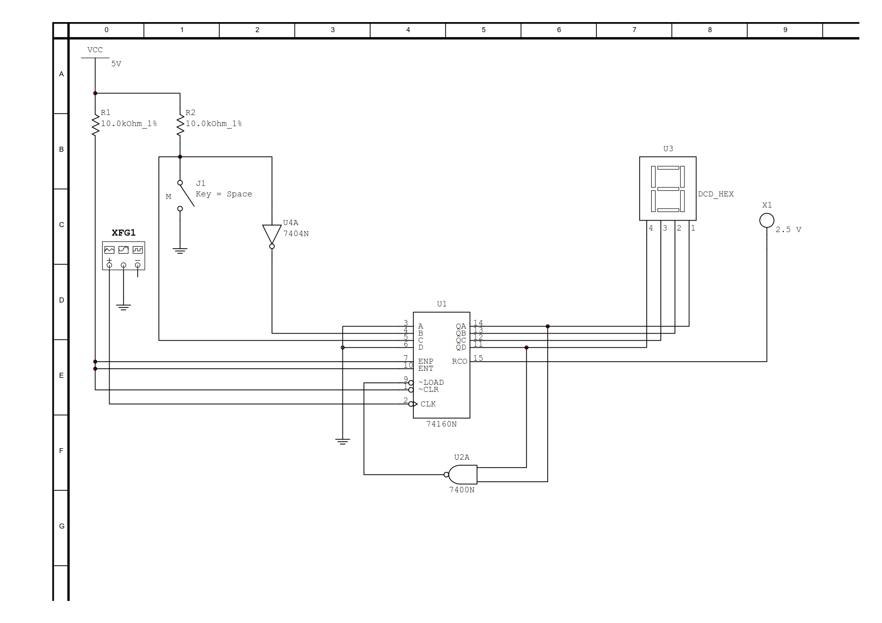 在进行分析之前, 有一点需要我们牢记心间——对于使用同步置数法设计的计数器, 其计数最大状态可根据LOAD'引脚的接法直接判断出: 以下图示电路为例, 通过其LOAD'引脚的接法, 可直接判断出电路计数最大状态为1001.