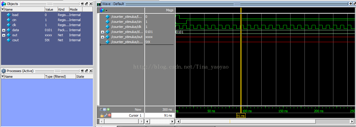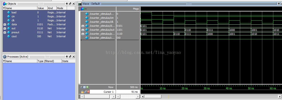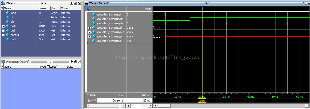 由图(2)可知,当上升沿到来前,load变成0,preout变成了未知值,除都非,我在仿真模块中把load前10ns的值设置为1,让preout一直为1,才能保证后面时刻仿真正确。
