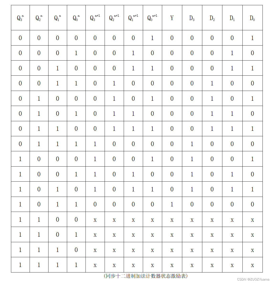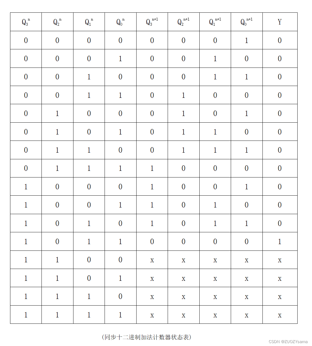 首先列出同步十二进制加法计数电路的状态表