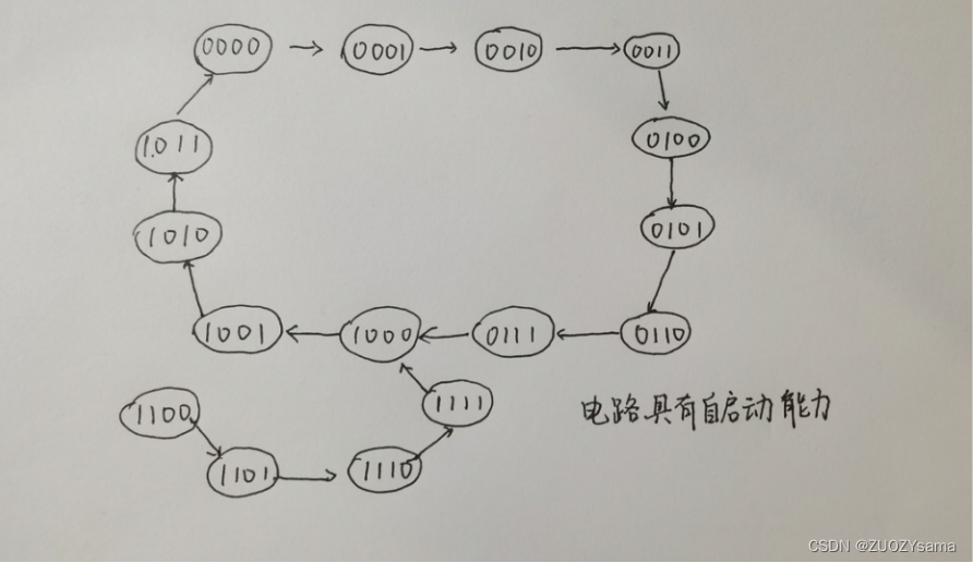 画出完全状态图,并检查自启动能力