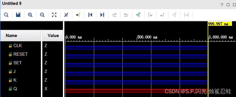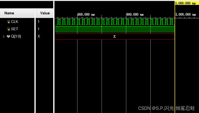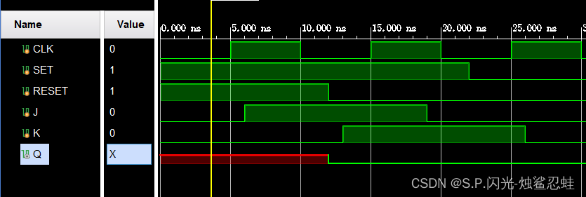 红色的先是因为CLK没有到上升沿,SET RESET没有到下降沿(讲道理CLK到第一个上升沿应该就不是红的了,不知道为什么)