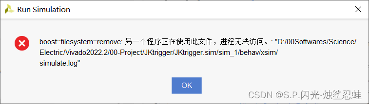 参考了这个:意思就是把能关的都关了再仿真就行了。如何解决Vivado仿真时提示:另一个程序正在使用此文件 /behav/xsim/simulate.log_weixin_52027058的博客-CSDN博客_vivado另一个程序正在使用此文件,进程无法访问
