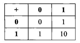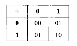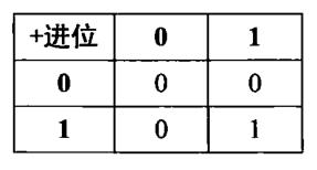 二进制数加法与十进制数加法最大的不同就在于二进制数加法中用到了一个更为简单的加法表: