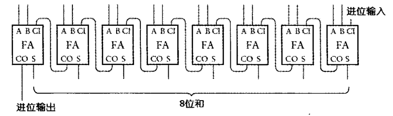 随后的每列二进制数都以同样的方式连接。每一列进位输出都是下一列的进位输入。