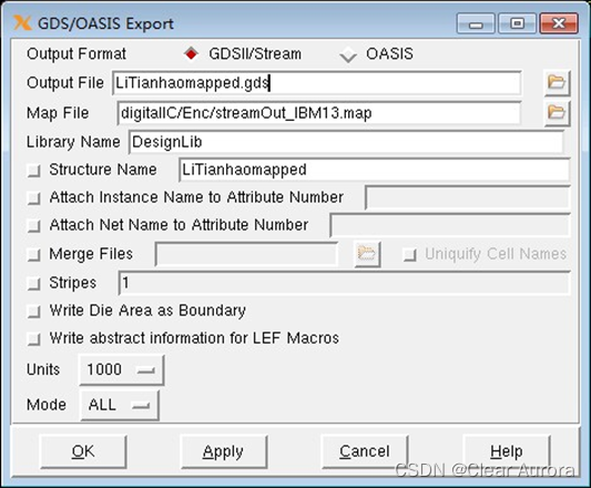 16)输出版图信息(.gds):Design →Save →GDS,保存GDSII格式版图文件,命名为LiTianhaomapped.gds,Map File选择streamOut_IBM13.map,如图: