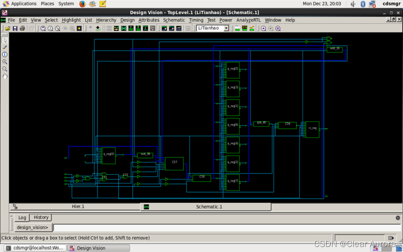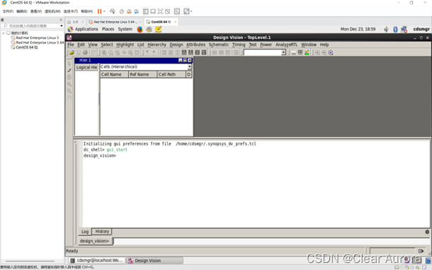 2)进入建好的工作目录,键入design_vision 命令启动用户图形界面如图:
