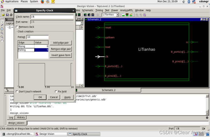 13)命令栏键入write_sdc -nosplit LiTianhaomapped.sdc ,保存时钟设计约束条件: