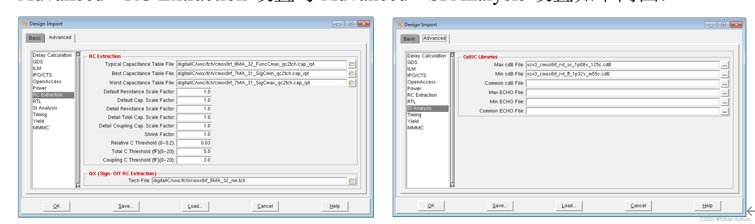 Advanced --RC Extraction设置与Advanced --SI Analysis设置如下两图: