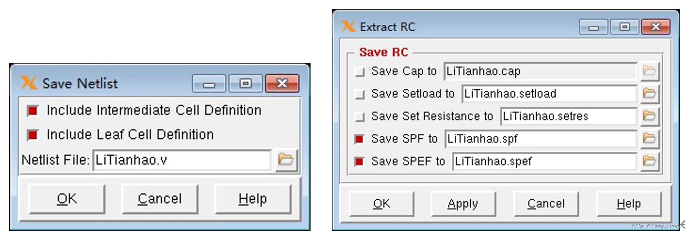 15)输出布局布线后网表文件(.v)及时序信息文件(.sdf),Timing→ Extract RC,保存spf,spef文件。如下两图: