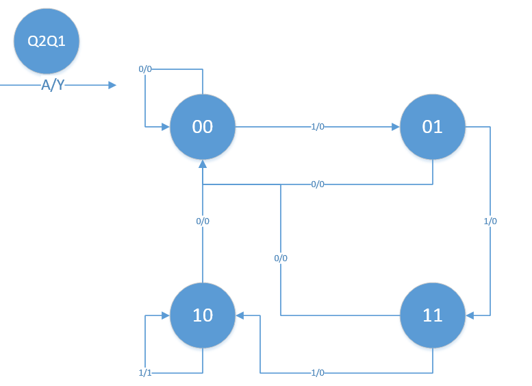 由状态图可以看出, 电路共有4个有效状态00、01、10、11. 当电路的连续四次输入为1111时, 输出Y=1; 若连续的四次输入不为1111时, 输出Y=0——这是一个同步1111序列检测电路.