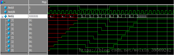 D U2(q[0],d,clk); %调用8次Module D,第一个的输入为d,其它输入为上一级的输出