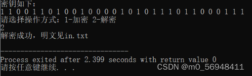 以上就是曾经往事最近收集整理的关于(应用密码学)实验四 流密码的全部内容,更多相关(应用密码学)实验四内容请搜索靠谱客的其他文章。