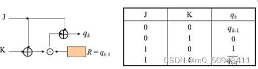 将两个序列分别作为JK触发器的输入端J、K,并且根据JK触发器的结构及逻辑真值表,可以得到255位的密钥流。