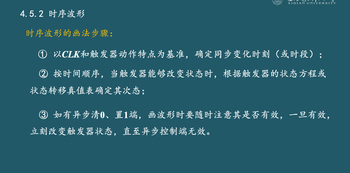 复习:常用触发器的触发方程,注意:只有当触发信号有效时(有效电平/有效边沿),我们才去计算这个触发方程。