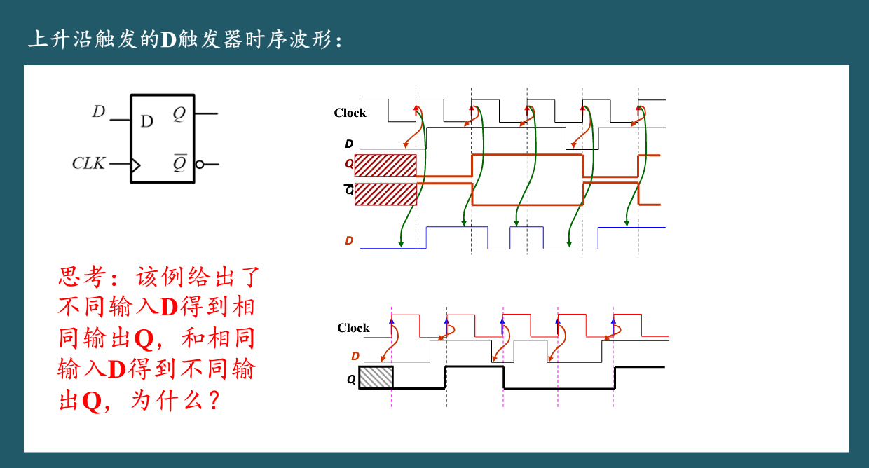 可以假设上升沿到来之前Q为0,也可以像上图画一个阴影表示Q为任意。