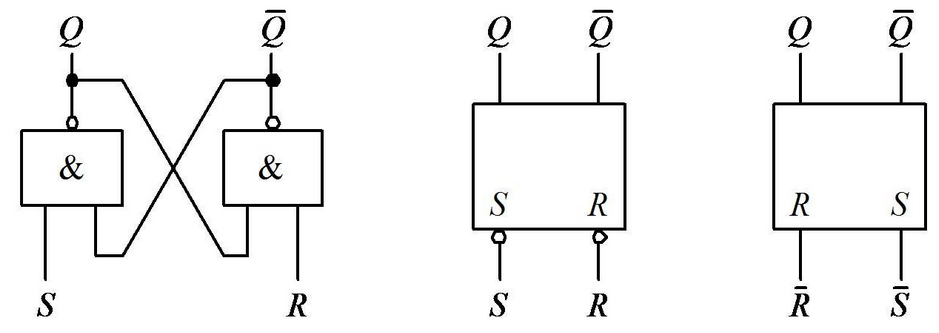 2.当R端无效(1)、S端有效时(0),则Q=1,Q非=0,触发器置1