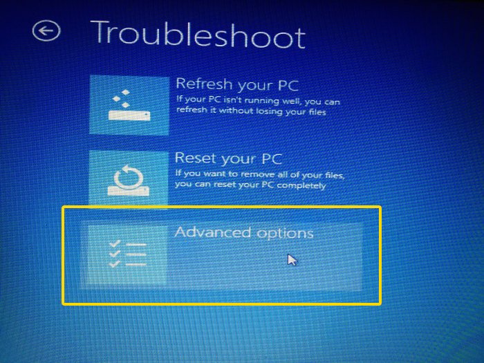 如果第六步中的命令不起作用,试试高级疑难解答中的自动修复选项。