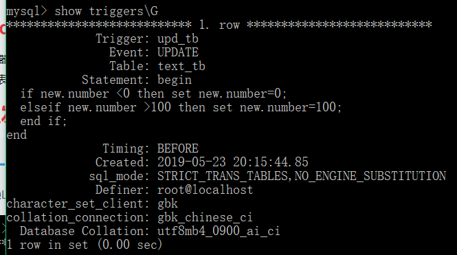 - 在MySQL中,所有的触发器都定义在information_schema数据库的triggers表中。例如: