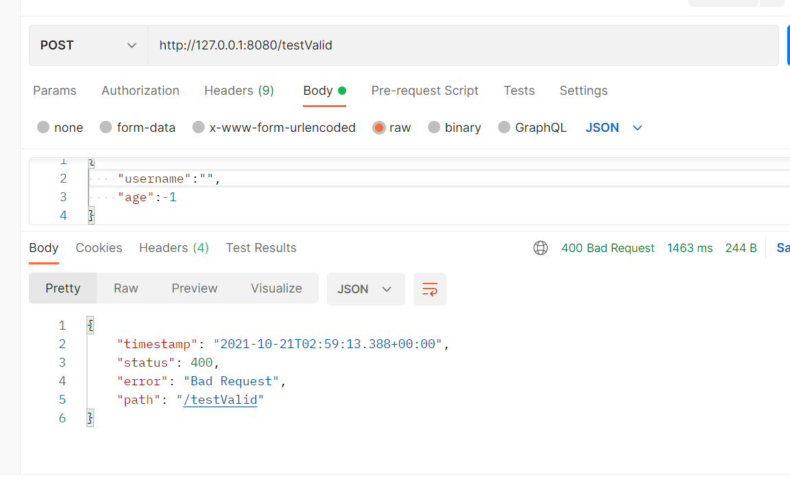 4.优雅捕获异常,这一步可以省略,但是请求时会直接返回,400的异常提示,不太优雅。