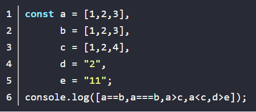 对于严格比较运算符===来说,仅当两个操作数的类型相同且值相等为 true ,而对于被广泛使用的比较运算符==来说,会在进行比较之前,将两个操作数转换成相同的类型。对于关系运算符(比如<=)来说,会先将操作数转换成原始值,使他们类型相同,再进行比较运算。