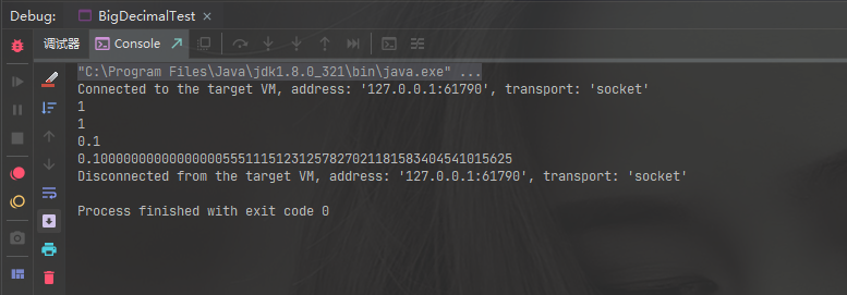 可以看到,使用 BigDecimal(double) 去创建双精度值对象时,实际值并不是预期的 0.1,这是因为:参数类型为 double 的构造方法的结果有一定的不可预知性。有人可能认为在 Java 中写入 newBigDecimal(0.1) 所创建的 BigDecimal 正好等于 0.1(非标度值 1,其标度为 1),但是它实际上等于 0.1000000000000000055511151231257827021181583404541015625。这是因为 0.1 无法准确地表示为 double(或者说对于该情况,不能表示为任何有限长度的二进制小数)。这样,传入到构造方法的值不会正好等于 0.1(虽然表面上等于该值)。
