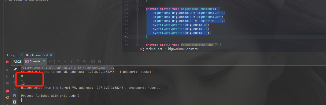 BigDecimal bigDecimal10 = BigDecimal.TEN;