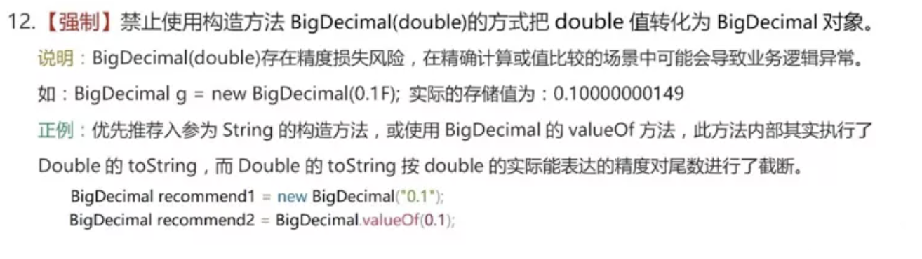BigDecimal使用double初始化时存在精度风险,那这是怎么一回事呢?其实在阿里开发手册中也有这么一条建议,或者说是要求吧