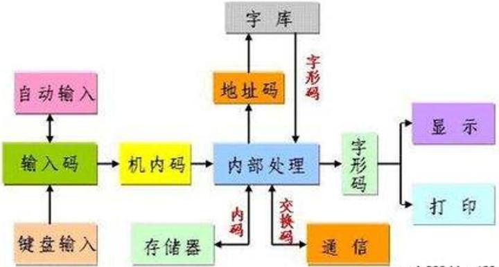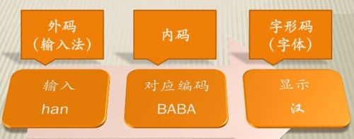 计算机通过键盘输入的外码(重码时还需附加选择编号)对应于汉字内码,将汉字外码转换(即映射)为汉字内码,以实现输入汉字的目的;通过汉字内码在字模库(即字库)中找出汉字的字形码,将汉字内码转换(即映射)为汉字字形码,以实现显示输出和打印输出汉字的目的。