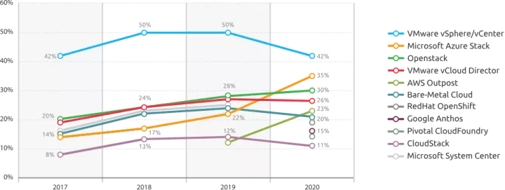 据Statista称,OpenStack 是最受欢迎的开源云平台,近年来其采用率稳步增长。截至 2020 年,30% 的受访者确认他们在生产中使用 OpenStack。