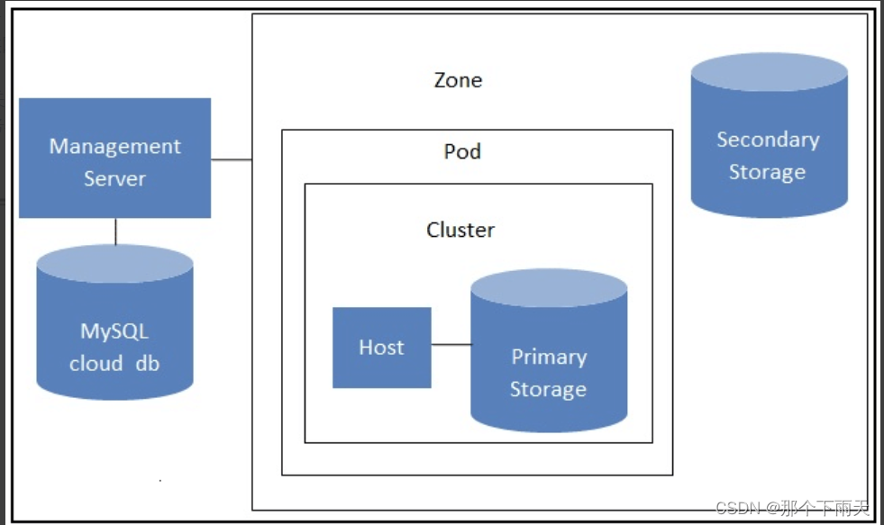 - Management Server(管理服务器)统一管理整个CloudStack环境