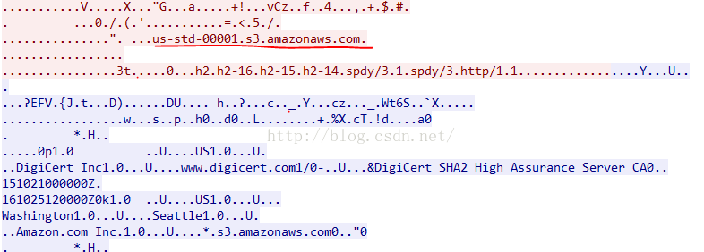 这条流是在从icloud升级到icloud drive的时候截取的(不得不吐槽的是人家亚马逊叫cloud drive,苹果把以前的icloud改为icloud drive,可见其山寨能力还是挺强的,前一段时间说苹果山寨中国建筑,就是死活不承认,这些老美也是够了)。从图1可以看出(http流),在对苹果的Host进行访问的时候,应答的服务器是AmazonS3,其实这里说使用亚马逊的服务还为时尚早。对图1中的IP地址17.248.152.208进行反向解析发现,这个IP所有者为苹果公司。这里Server的值为AmazonS3,我猜测是苹果公司内部用来说明该台服务器与亚马逊的S3机群进行相关交互。的确在截取的其他流中的确发现了Amazon的S3服务器所提供的服务,见图2(HTTPS流):