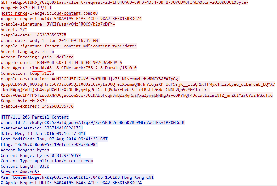 图1中还有一点值得注意的地方是UA,一开始我看到UA的值是cloudd,我就纳闷了,我在使用苹果的icloud drive,UA为什么不写成icloudd,而非要让我联想到亚马逊的cloud drive呢,知道我看到了图3,我才确认UA的确是苹果的,苹果害人不浅那!