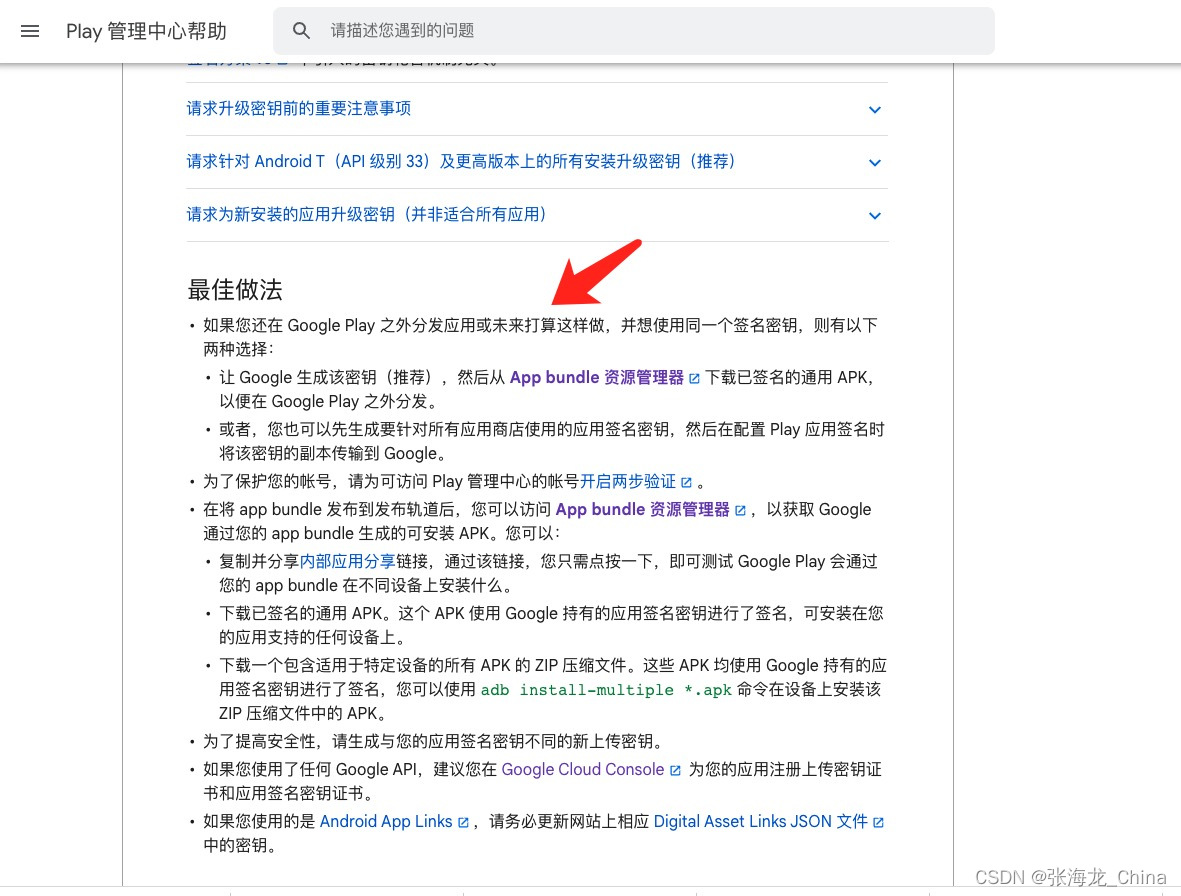 1.签名问题 由于Google play 会对APK二次签名,为了保持其他国际应用商店和Google Play 应用商店的APK保持一致,一般会先将APK或者bundle的aab文件上传到Google Play 然后从Google Play 下载签名后的APK,这块Google play 是有支持的