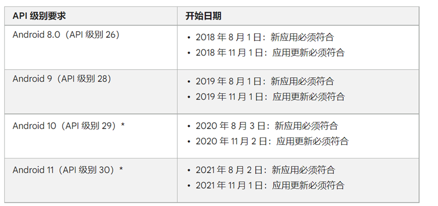 (1)目前Google Play管理中心对Android 10的目标安全级别要求至少为30!