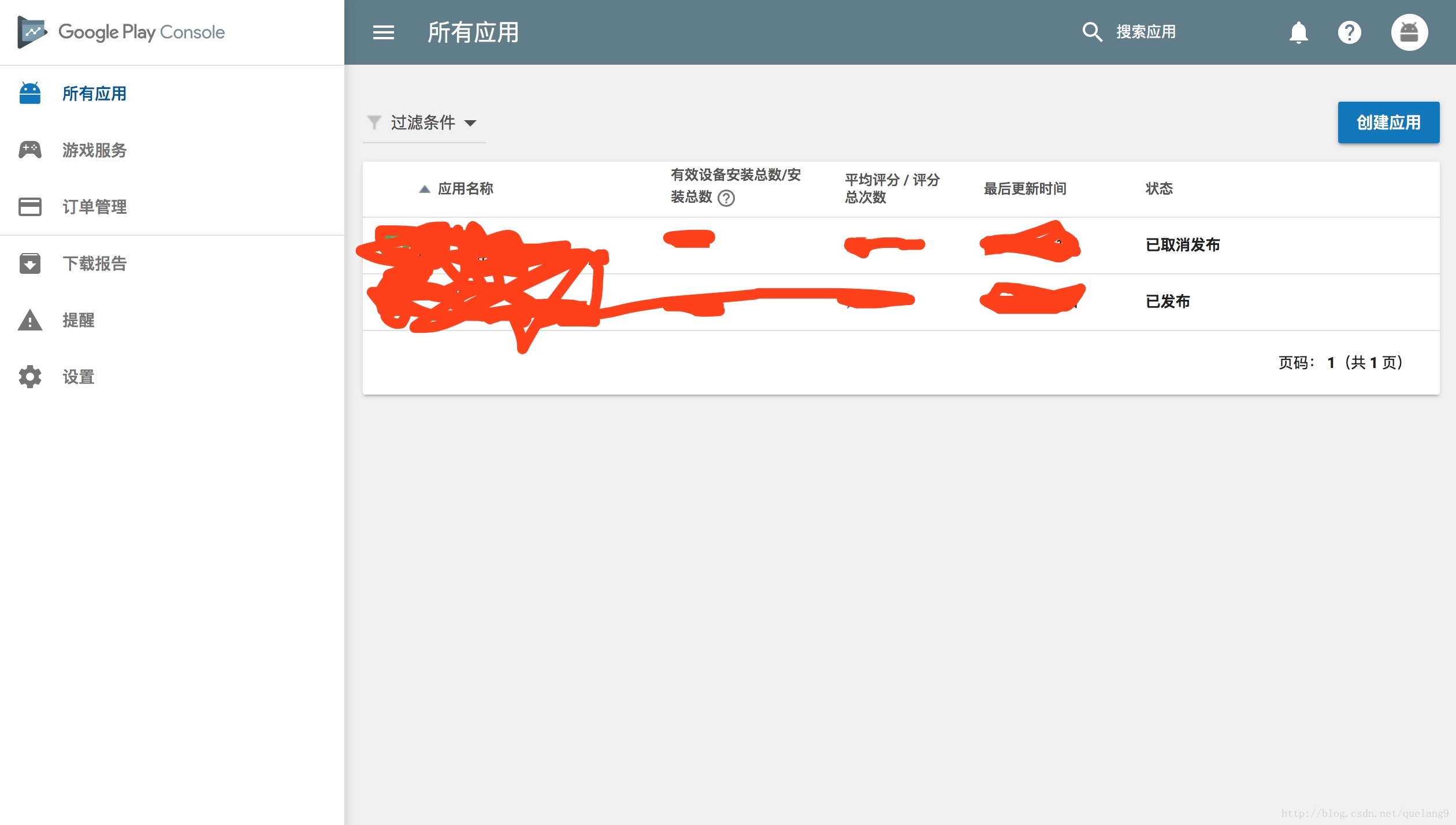 假设你现在已经有了一个可以正常使用的Google Play开发者账号,那么你应该会看到这样一个界面: