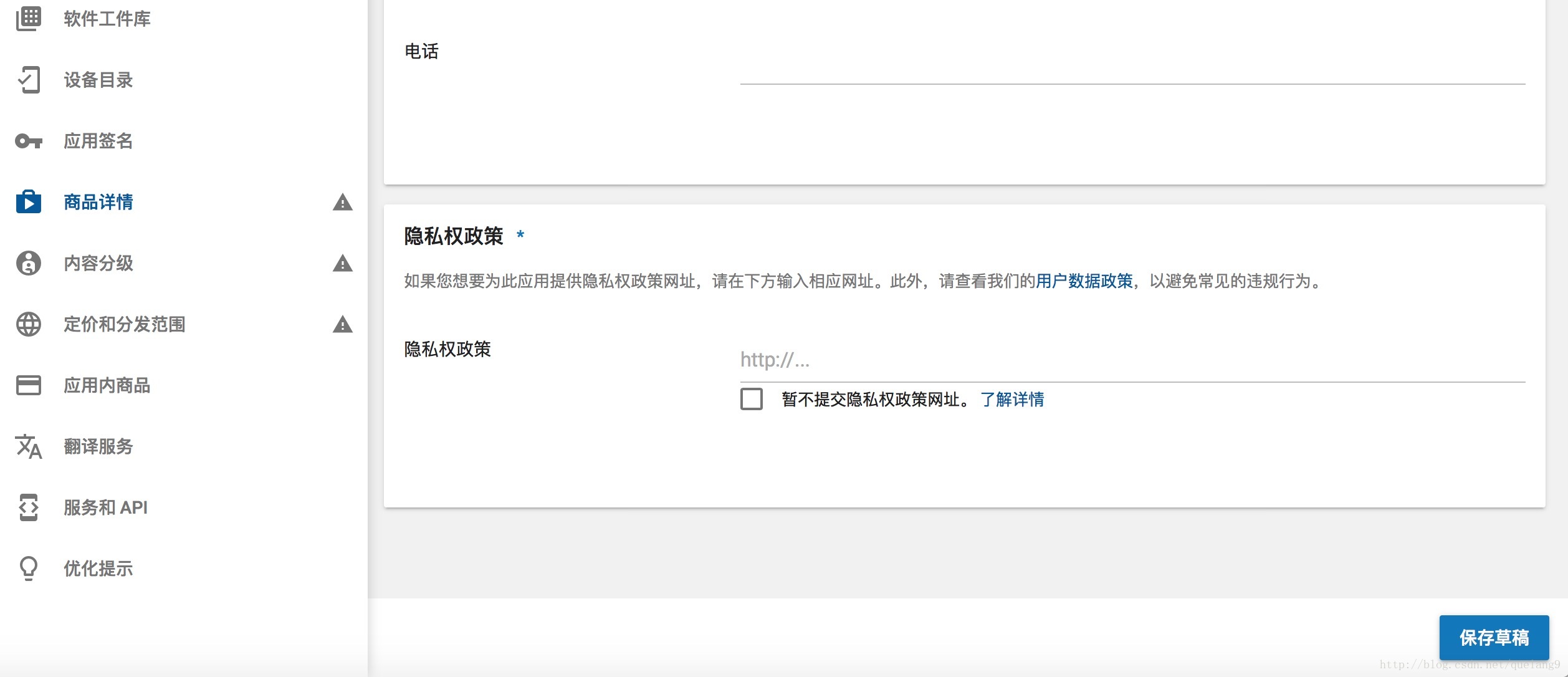有小伙伴反馈Google Play有调整,此处的隐私权政策的网址必须填写