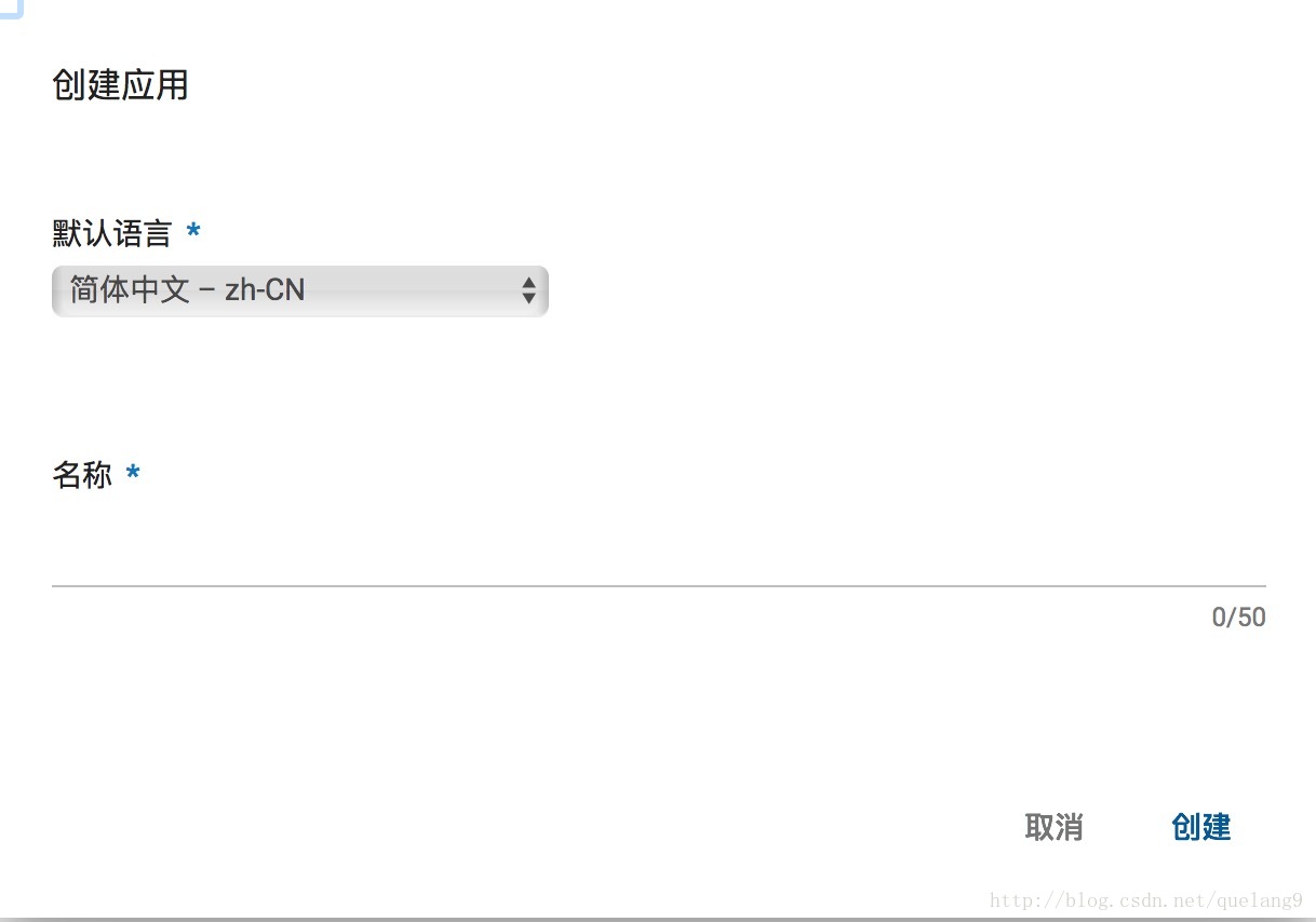 当然请忽略上面我红色划去的部分,点击创建应用,会出现一个弹窗: