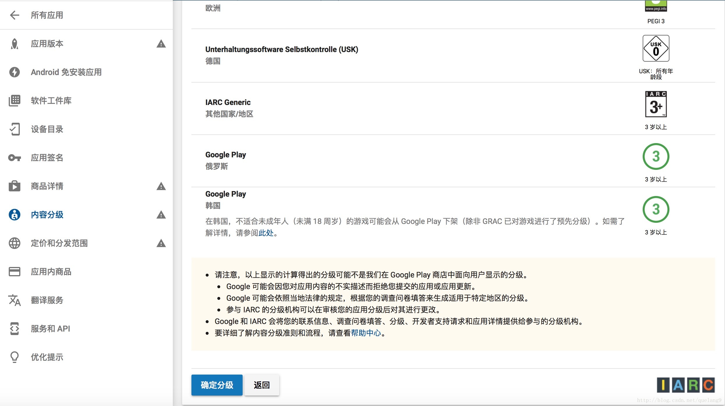 点击确认分级,内容分级项就全部Ok了~