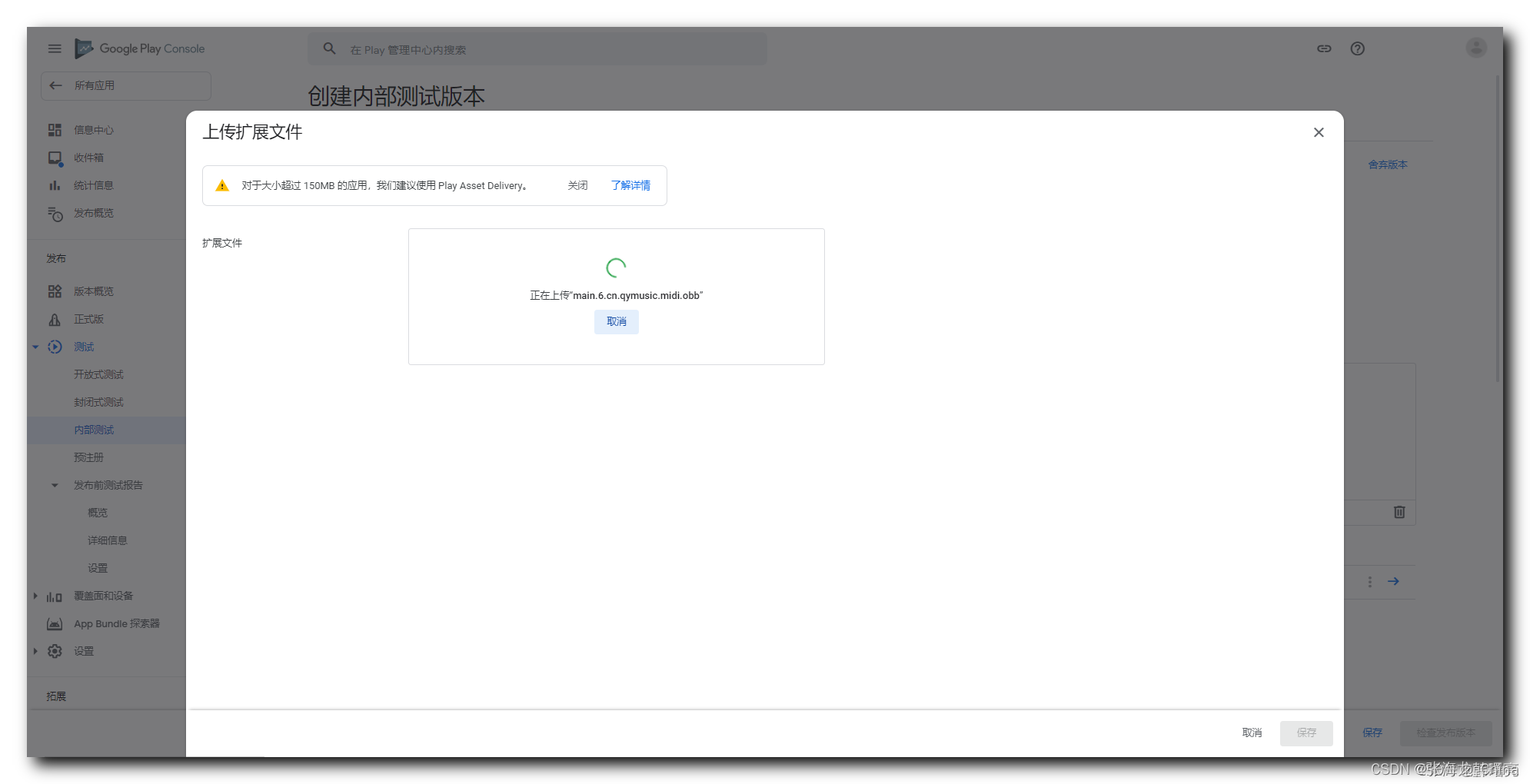 就这样把APK和obb文件一块上传到Google Play,内测用户就可以下载安装了,等测试的没问题就可以发布到正式线上环境了,当用户下载该APK时,我们上传的obb文件也会同步下载到手机中