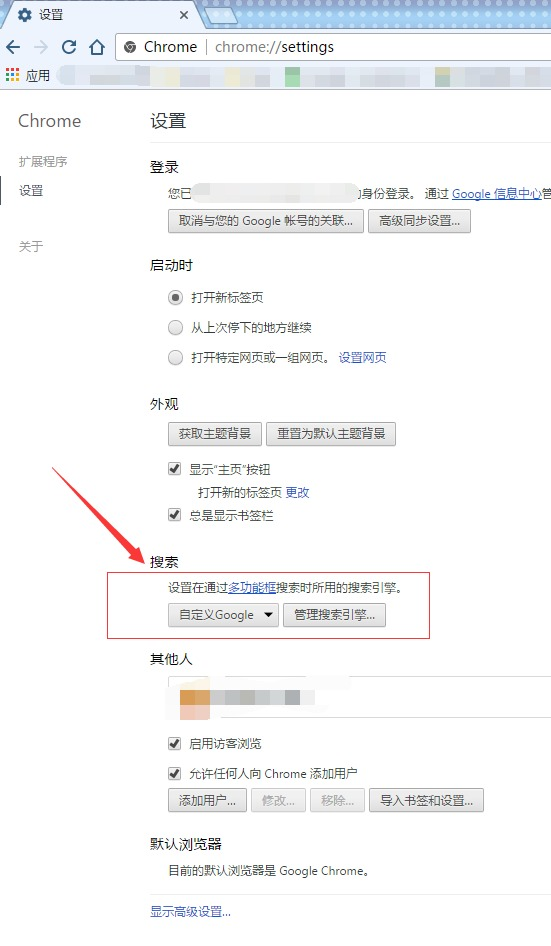 1 访问 <google.com/ncr>,随便搜索一个关键字。(ncr=no country redirect不做国家跳转) 2 修改浏览器默认搜索引擎。下面以 Chrome 为例: