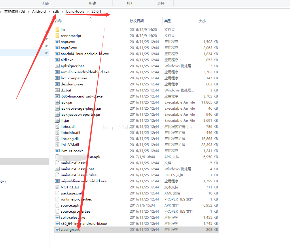 1、zipalign优化工具在 D:Androidsdkbuild-tools25.0.1目录下