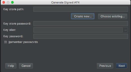 之后在 Generate Signed APK 的时候都会需要再输入上面提到的 Key Store Password 和 Key Password。