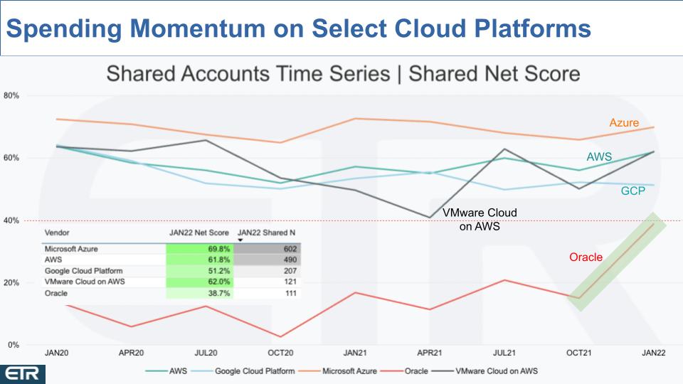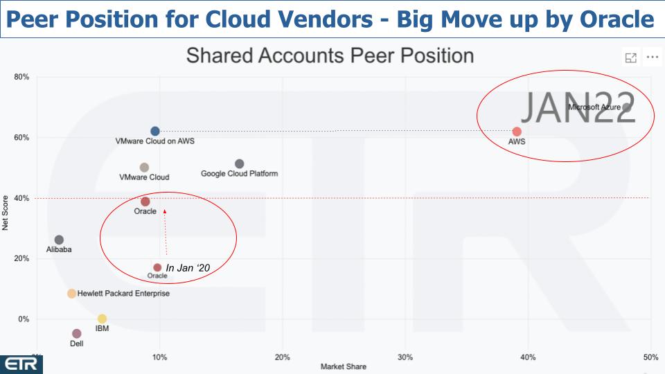 但是,这些数字中最大的惊喜是Oracle的稳步攀升和陡峭的上升势头,达到了仅低于40%的水平。当然,一个季度不代表一种趋势,但追溯到2020年1月,Oracle的峰值越来越高。这将继续引发市场的关注。