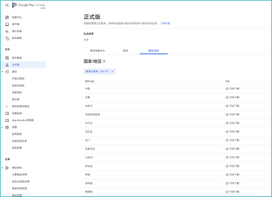 3.2.1 【选择国家和地区】根据应用的海外市场战略,选择要发布的国际和地区即可。目前一共有151个国际和地区可供选择。应用发布后,如果发现多发布或者少发布了国家或地区,可以进行更改,审核也较快(2~5小时)。