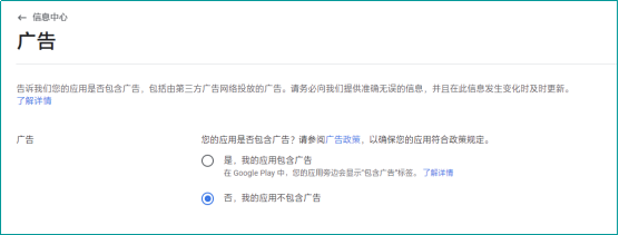 2.2.2 【广告】应用内是否含有广告,如何填写即可。