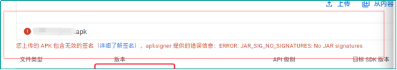 3.2.2 【创建新版本】上传加固好的安卓应用程序包并为版本号命名。如果程序包有不满足要求的地方,会有相应的提示,修改后再次上传直至通过即可。
